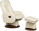 The perfect pair for your living room! This stylish chair features three functions in one: it's a glider rocking chair; a recliner; and it's a swivel chair. The chair comes in a Soft Touch vanilla faux leather upholstery and has a durable, solid wood frame. The Soft Touch leatherette fabric is highly durable, waterproof, easy to clean, colorfast and eco-friendly. Includes a matching ottoman, which also glides, and has a removable top that comes off to reveal a generous storage space inside.